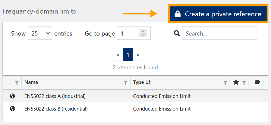 To create a new frequency-domain limit element, the user needs to click on “Create a private reference” on the main page.