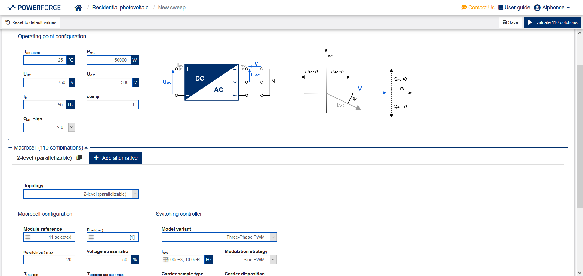 This space allows you to evaluate an ehxaustive list of design solutions, based on value ranges, topology alternatives and semiconductors selections you specified.